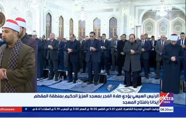 • الرئيس السيسى يؤدى صلاة الفجر بمسجد العزيز الحكيم بالمقطم إيذانا بافتتاحه