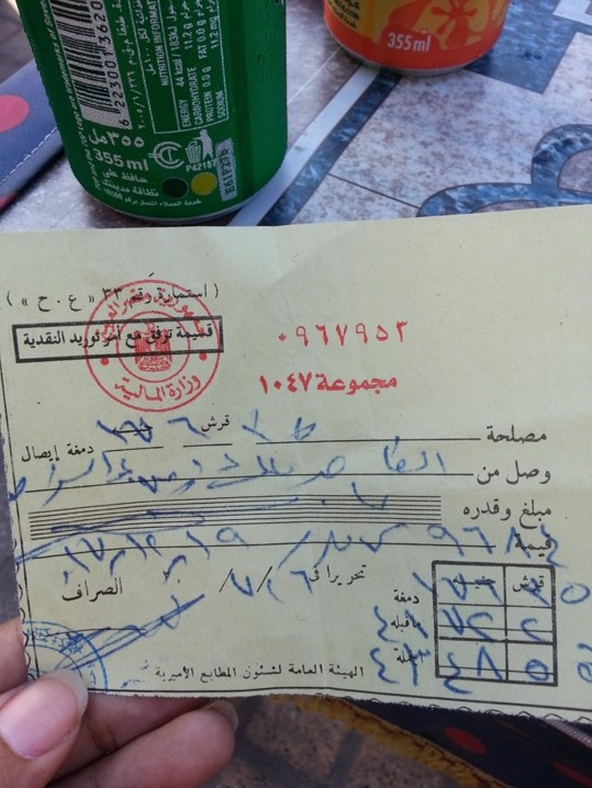 إيصال يوثق دفع الضرائب وجميع المستحقات