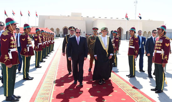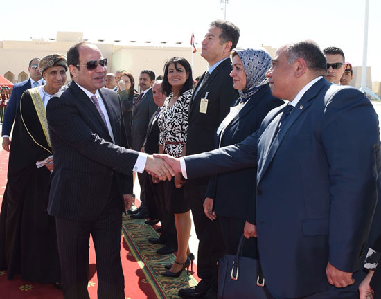 وكان فى وداع الرئيس السيسي، بالمطار السلطانى الخاص، يوسف بن علوى وزير الشئون الخارجية، وأمين عام مجلس الوزراء، ووزير الدولة ومحافظ مسقط، وسفير السلطنة لدى مصر، وأعضاء السفارة المصرية فى مسقط.